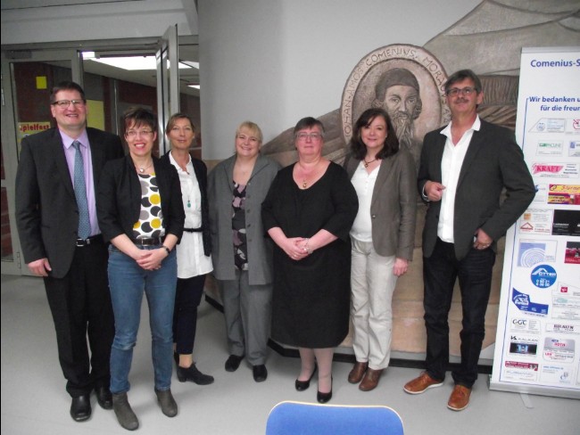 Johann Kechele Geschäftsführer; Christiane Büttner, Vorstandsmitglied und Schriftführerin ; Sybille Hafner-Lurz Regierungsrätin aus Unterfranken, Heike Syha Vorstandsmitglied und Elternbeiratsvorsitzende der Comenius Schule, Claudia Grubmüller Landesvorsitzende, Jessica Euler Bürgermeisterin von Aschafenburg und Jürgen Paul Schulleiter der Comenius Schule