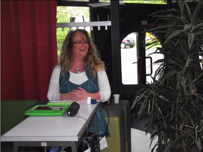 Unsere Referentin mit ihrem Arbeitsgeräten auf dem Tisch