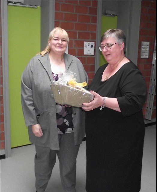Unsere Landevorsitzende Frau Claudia Grubmüller bedankte sich bei der Elternbeiratsvorsitzenden Frau Heike Syha und ihrem Team für die Ausrichtung der Mitgliederversammlung des Landeselternbeirates mit einem Geschenk.