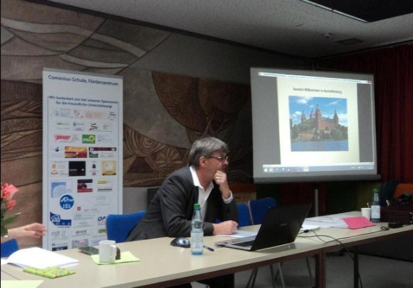 Schulleiter Jürgen Paul bei seinem Vortrag über die Schule und die Stadt Aschaffenburg